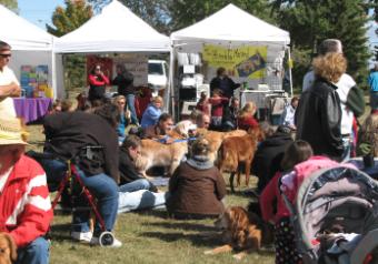 Allen and Linda Anderson gave a presentation to a large crowd at the Goldzilla, the Golden Retriever Fun Fair and Walk for Rescue on Saturday, September 22, 2012 about Leaf and the new book by Lyons Press, A Dog Named Leaf.  It was a blast with Leaf on stage with us observing the crowd and all the Golden Retrievers.